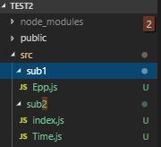 다음과 같이 sub2 Directory에 index.js랑 Time.js를 생성해보자.