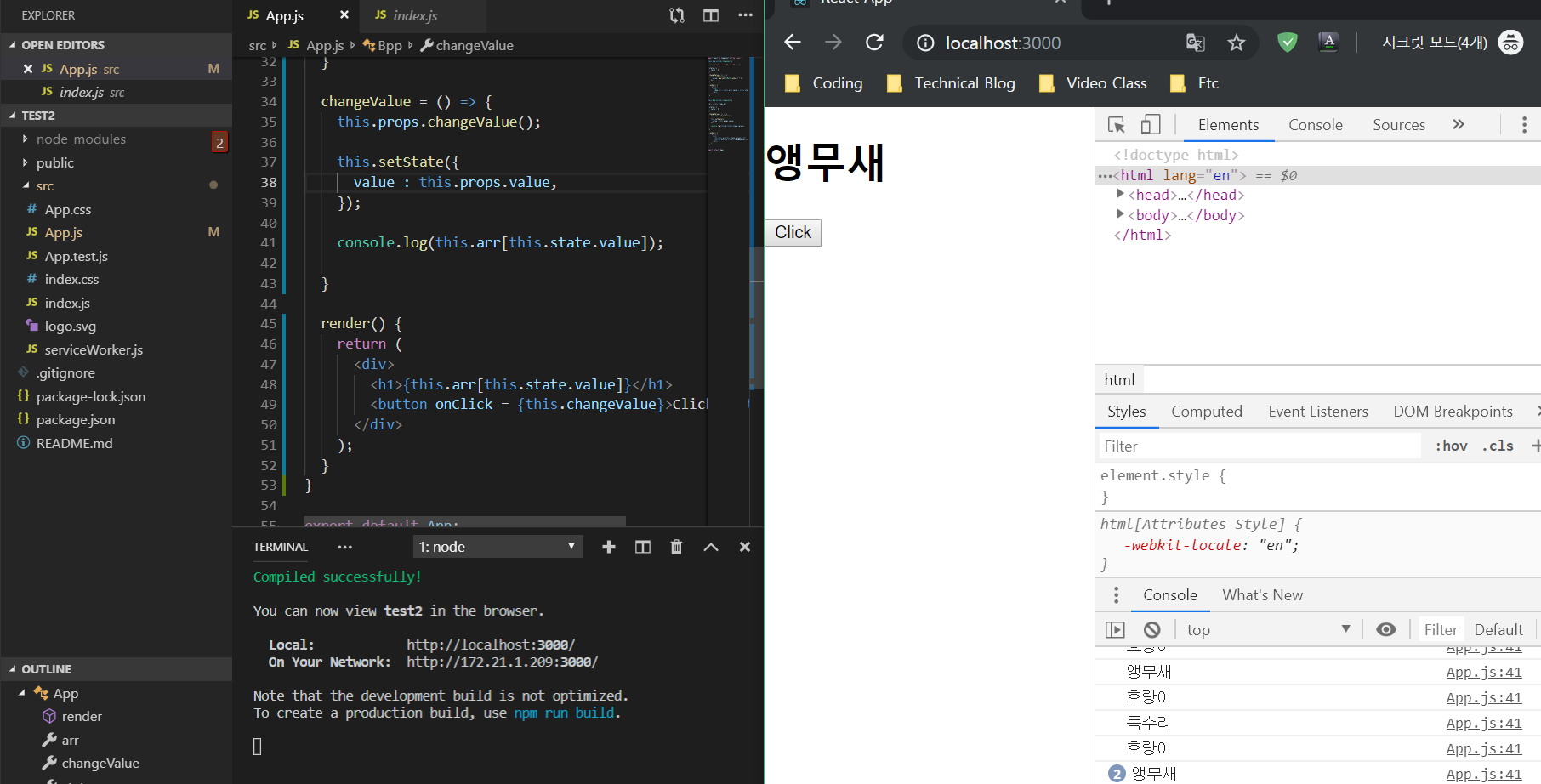 저번 포스팅에서 설명한 props와 state를 활용해 간단한 예제를 만들어보도록 하자.