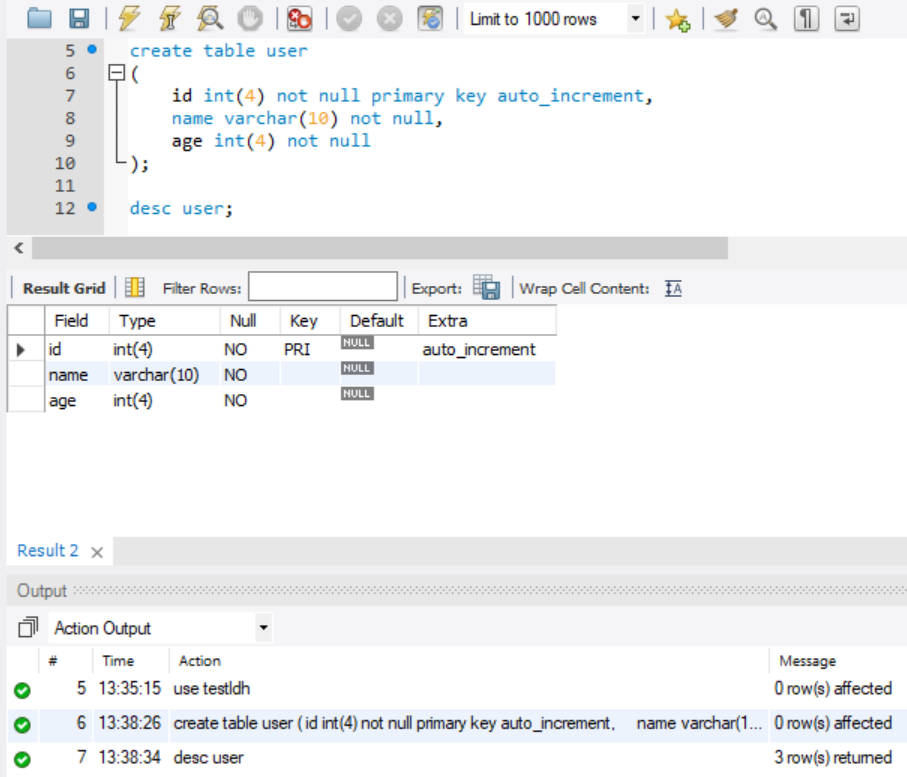 그렇다면 가장 간단한 테이블을 생성해보자.