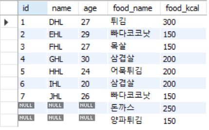 JOIN을 활용하여 각자 어떤 음식을 좋아하는지 한 눈에 알아보도록 하자.